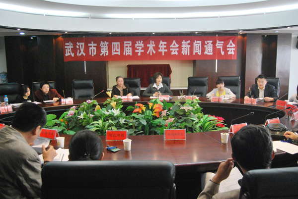 10月20日上午,武汉市第四届学术年会新闻通气会在市科协召开。市第四届学术年会组委会办公室主任、市科协党组成员、副主席张太玲同志,市科协副主席杨军同志,市委宣传部新闻处、市科协组宣部有关负责同志以及来自光明日报、经济日报、中新社、湖北日报、长江日报等近20家媒体的记者参加发布会。会议由杨军同志主持。