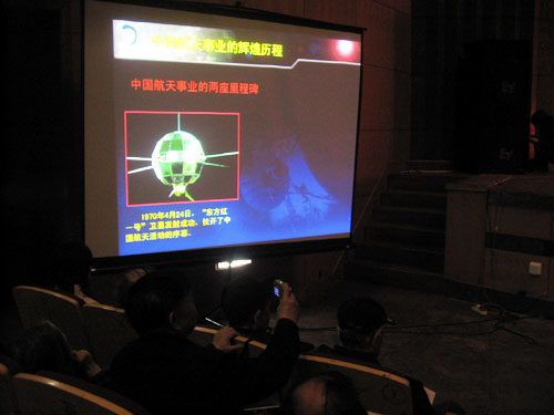 25日,著名航天专家、国防科工委原副主任兼国家航天局局长栾恩杰以 “绕月探测工程”为题,拉开了“万名科技家讲科普”活动的序幕。