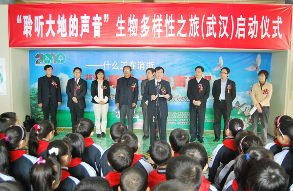 11月12日上午,由环境保护部宣传教育中心主办、李嘉诚基金会赞助的“聆听大地的声音”生物多样性之旅来到第六站武汉,并于武汉科技馆进行启动仪式。