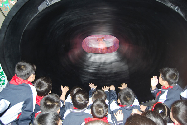 七一寄宿小学的同学们正在观看最新作品“什么正在消逝”。
