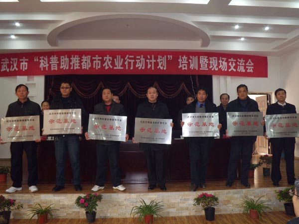 会议特邀市农业局总农艺师杨普社作了“武汉市都市农业发展”讲座,市科协计财处和科普部负责人分别讲解了助农资金管理和项目管理的有关事项。会上,还为2010年助农项目单位和武汉市科普惠农服务站授牌。