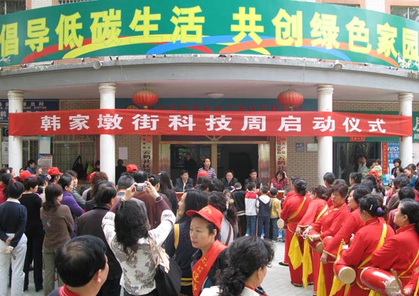 4月29日上午,“倡导低碳生活 共创绿色家园”暨韩家墩街科技周启动仪式在韩家街云鹤社区隆重举行,硚口区科协主席李光、副主席胡永江应邀参加了启动仪式。韩家墩街办事处主任邹慧来和副主任王汉滨代表街办事处发表了热情洋溢地致辞;武汉市鑫飞达公司经理彭正文宣讲了低碳节能、绿色出行的意义,号召市民积极体验“两型”产品;云鹤社区的居民代表当场宣读了倡议书;硚口区科协主席李光宣布:韩家墩街2010年科技周正式启动。