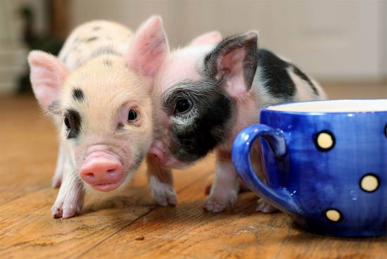 日前,一种迷你的茶杯猪风靡英国,成为了动物爱好们的新宠。这种小猪只有茶杯那么大,由塔姆沃思猪和格洛斯特郡花猪杂交而成的。刚出生不久的茶杯猪比家猫还要娇小,差不多半斤重。即使有一天它们长大,“出落”为成猪,这种猪的体型也比普通猪小得多,两岁的时候,体长在30-40厘米,重约30公斤。