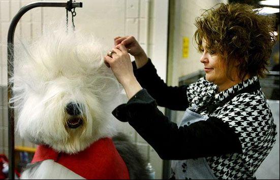 今年,在纽约麦迪逊广场花园举行的第133届“威斯敏斯特犬舍俱乐部名犬秀”上,香农-舒尔正在为她的古代英国牧羊犬伊格伊化妆打扮。“威斯敏斯特犬舍俱乐部名犬秀”在美国有着悠久的历史,每年举行一次,今年是第133届。