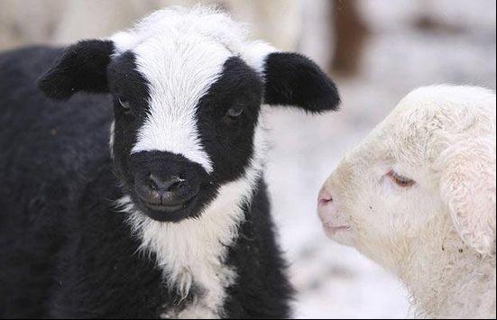 图中这只黑白相间的动物,它到底是牛还是羊?答案是羊,它是生活于中国新疆阿勒泰地区的一只小羊羔。不过,它看起来确实很像一头产自荷兰的弗里斯兰奶牛。