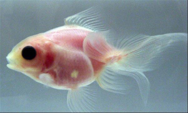 日本三重大学研究人员培育出一种透明金鱼,可清楚看见内脏和肌肉。这种金鱼今后有望广泛应用于实验研究。