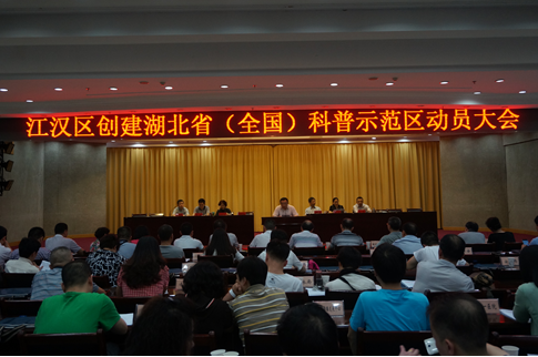 5月27日下午3时,江汉区创建湖北省(全国)科普示范区动员大会在区机关五楼大会堂召开。会议明确了创建工作实施方案和责任分工,进一步统一了思想,明确了创建工作方向。会议由区政府办主任蔡正刚主持。会上,区政府副区长孟晖对创建工作进行了部署,明确了创建工作的指导思想、总体目标、主要任务、创建步骤和责任要求。区教育局副局长陈琪、万松街工委主任李虹代表全区创建责任单位作了表态发言。