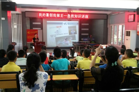 活动开始前,汽运社区青少年空间工作人员为大家介绍了此次活动的背景和意义,明确了活动互动的形式和参与的规则。活动中,普爱医院秋玲志愿服务队的高秋玲老师与大家讨论了身边可能存在的安全隐患,和同学们共同分析这些隐患易引发的意外伤害,使大家认识到生活中处处都存在着安全隐患,要避免不受伤害就要处处留心注意,掌握保护自己的方法。在接下来的急救知识讲座,高老师围绕三个身边最易发生的溺水、触电和异物引发的窒息等三种意外伤害展开,向同学们现场展示并教授了海姆立克急救法以及心肺复苏急救法的操作。