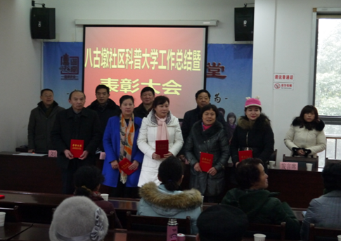 为总结工作,表彰先进,推动社区科普大学更好开展,1月14日上午9点30分,八古墩社区举办了社区科普大学教学点工作总结暨表彰会。区科协、唐家墩街领导及科普大学的教师和学员共计40余人参加了总结表彰会。
