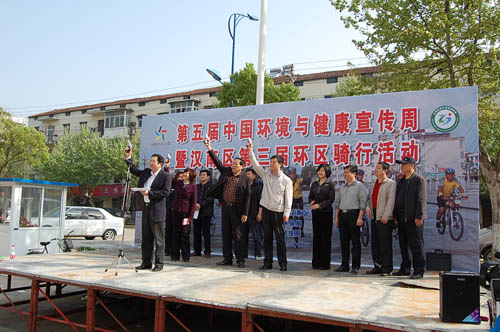 市科协网讯 4月22日上午9时,汉南区第三届环区骑游活动在武商量贩汉南店门前广场举行。这次环区骑行活动由农工党汉南区工委、区水务局、区环保局、区文体局、区科技局共同举办。汉南骑行团、武汉楚天骑游队共100多名骑行爱好者参加了这次环区骑行活动。