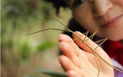 中国科学家近日首次将人工繁育的中国巨竹节.虫幼体野化放归,这种昆虫成体全长接近成人一只手臂,是世界最长的昆虫。