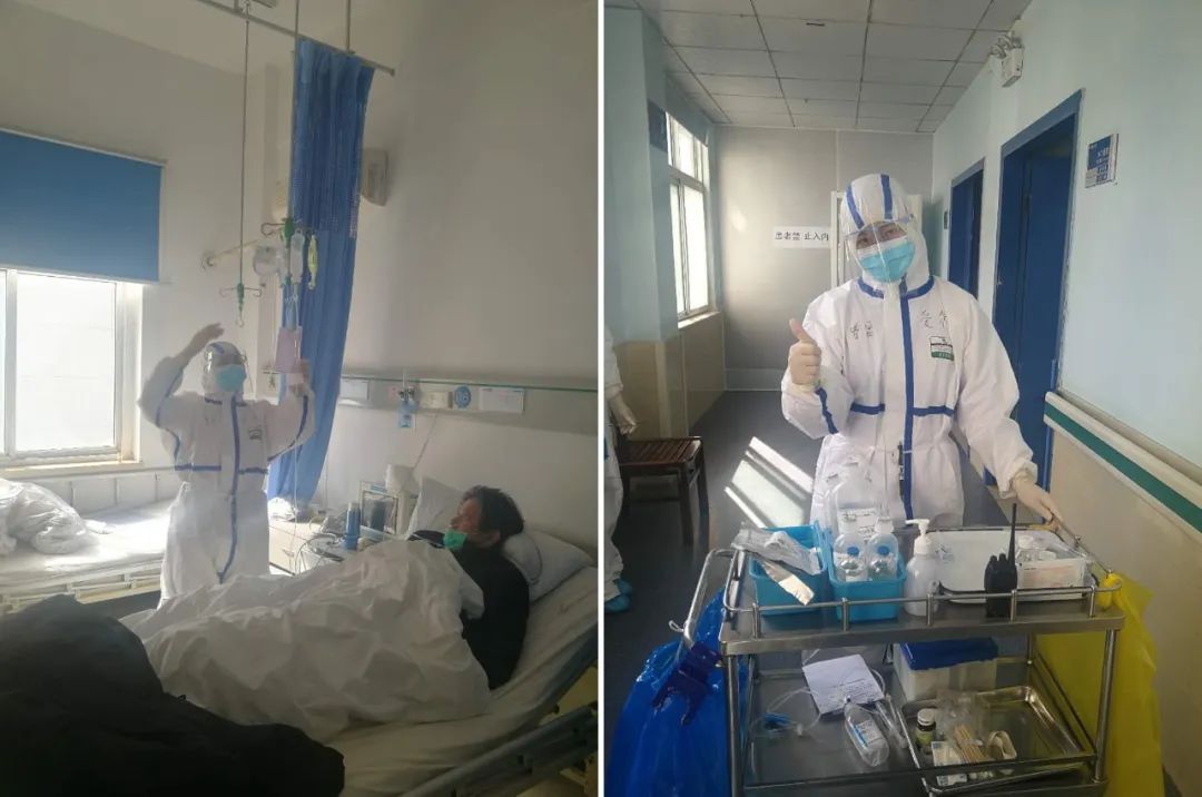 抗疫一线工作已有半个多月,虽是直接接触感染患者,说实话,我们也怕,但专业知识让我们镇定。每天上班,我们会提前去穿好厚厚的防护衣,仔细检查、小心谨慎,做好完善的防护工作,降低感染几率。然后,开始一天的工作:打针、输液、吸氧、搬运氧气瓶、上无创呼吸机、换呼吸机水、静脉采血、动脉采血……很庆幸,以往扎实的工作经验让我们在这场疫情防控中得心应手。