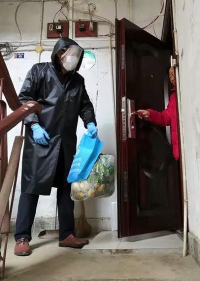 这是一大早,他和区科协主席刘洁梅在了解到部分老年住户蔬菜缺乏后,多方筹措,组织捐赠了一批爱心菜,当天下午近6时,这车蔬菜就运到了,他一分钟也没有休息,马上着手送去居民家。