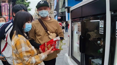 “除了无人驾驶,这辆车还可以无人售卖哦!”陈超指着车身的橱窗介绍,该车搭载的“智能微超”可支持16人同时近车购买商品,并且车辆控制、行驶、以及车辆配置的广告屏和售卖柜电子标签都可以远程操作改写。此外车辆售卖柜摆放的产品、车身屏幕内容和语音根据活动主题自主设计。