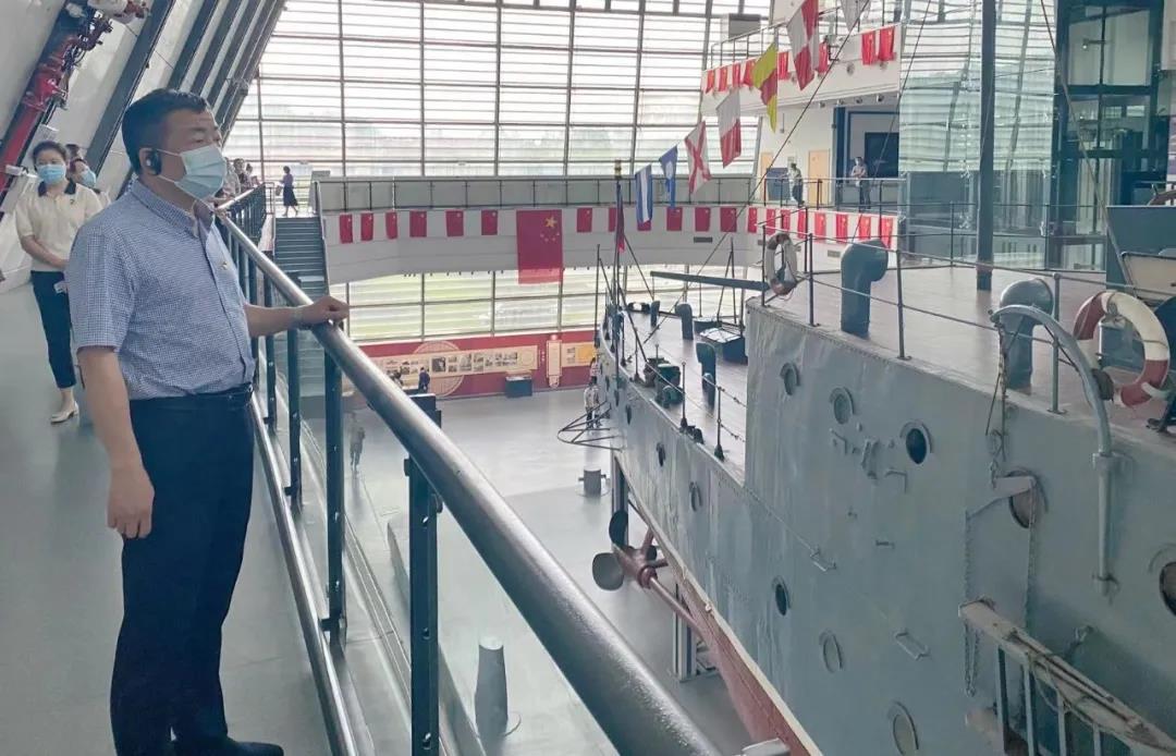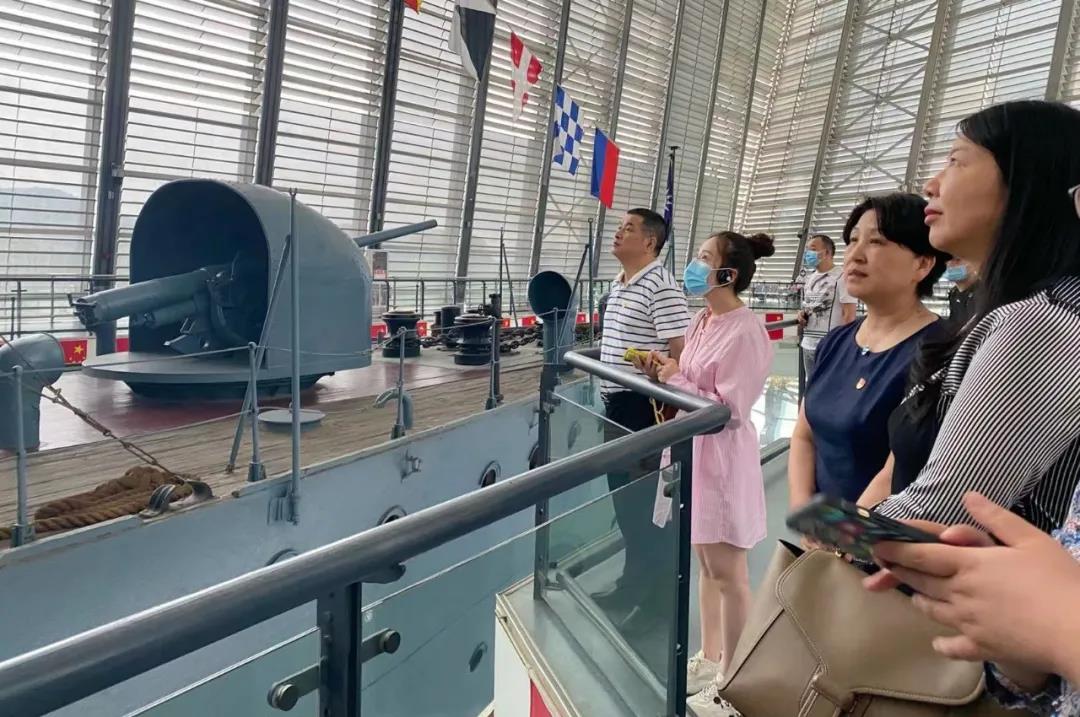 在中山舰展厅,市科协党组书记、副主席陈光勇带领同志们面向党旗,高举右拳,重温入党誓词。活动中,大家怀着无限崇敬的心情,跟随讲解,依次参观中山舰打捞修复后的舰体;了解中山舰建造、沿革、功绩、沉没、打捞等历史事件。