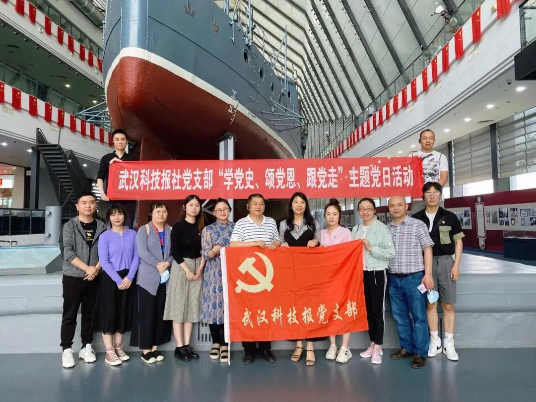市科协网讯(记者 郑莉莉 张宇驰 摄影 刘炼)为喜迎中国共产党百年华诞,丰富主题党日活动方式,6月3日下午,第一、第二党支部、武汉科技报党支部在中山舰博物馆联合开展“学党史、颂党恩、跟党走”主题党日活动,先后参观中山舰博物馆及《门票中的红色记忆》展览,并向海军阵亡将士纪念碑敬献花篮,缅怀抗战先烈,重温革命历史。
