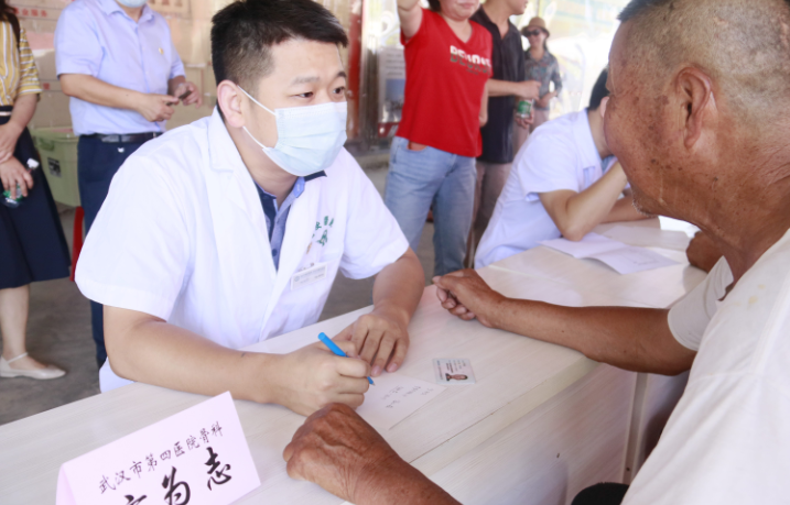 健康科普志愿服务队由武汉医学会心血管、内分泌、耳鼻喉、骨科、皮肤和消化6个专科分会专家与综合党支部党员、入党积极分子组成,为当地150位居民开展义诊与科普服务。通过义诊,发现很多病症,现场针对性进行一对一解答,并为他们开出健康“处方”。