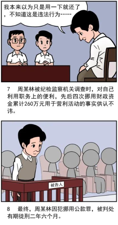 2021年3月2日,周某林犯挪用公款罪,被判处有期徒刑二年六个月。