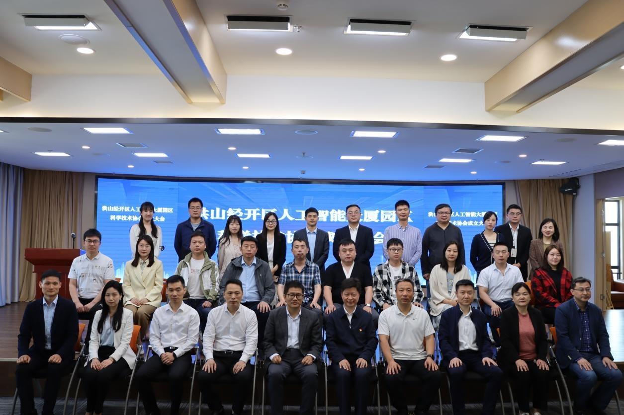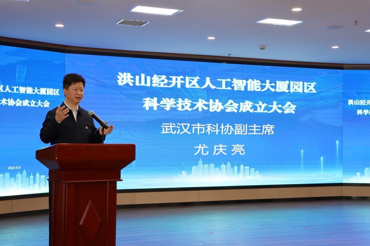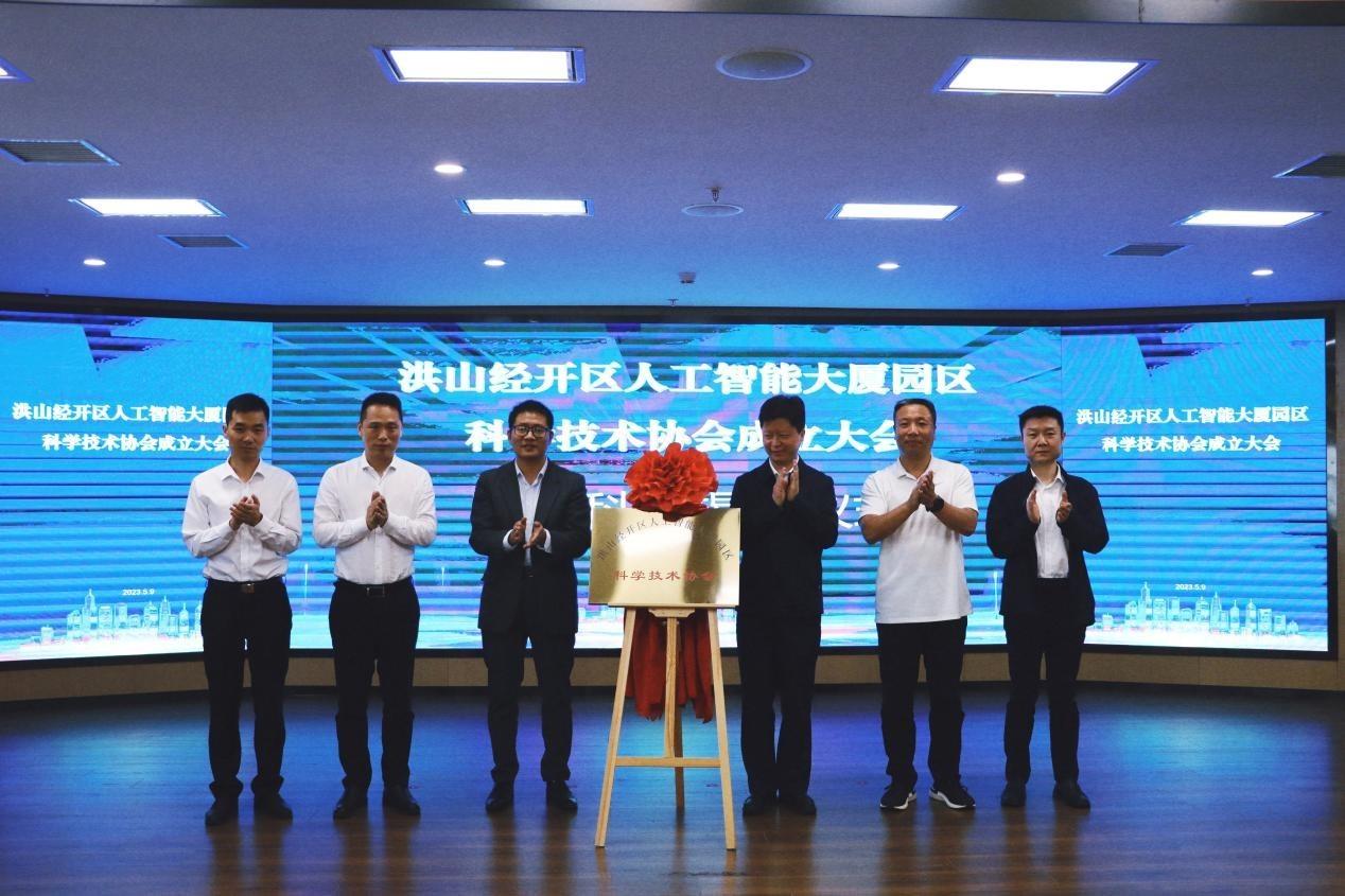 尤庆亮、龚秀成、戴意涛、蔡劲松、张琥、喻峰为洪山经开区人工智能大厦园区科协揭牌