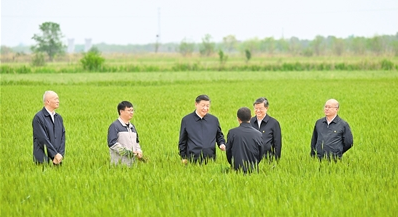 5月11日至12日,中共中央总书记、国家主席、中央军委主席习近平在河北考察,并主持召开深入推进京津冀协同发展座谈会。这是11日上午,习近平在沧州市黄骅市旧城镇仙庄片区旱碱地麦田考察时,同种植户、农技专家亲切交流