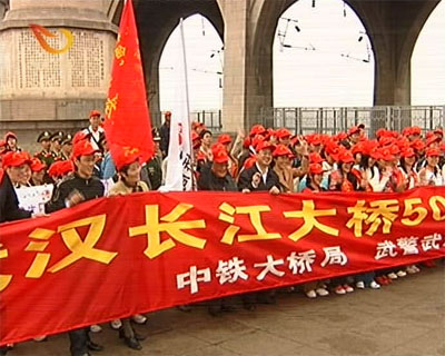 10月14日,武汉市迎接十七大群众文化活动在汉口江滩拉开大幕。当长达17米的巨幅党旗展开时,现场一片欢腾。