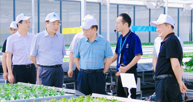 活动分为实地考察调研和座谈交流两部分。院士专家一行先实地调研了智慧农业馆无土栽培果蔬种植和全自动控制育苗设施、水生植物种质资源圃及蔬菜工厂等,详细了解园区规划、发展优势、特色产业发展等情况,并针对相关问题进行答疑解惑,现场进行专业指导。