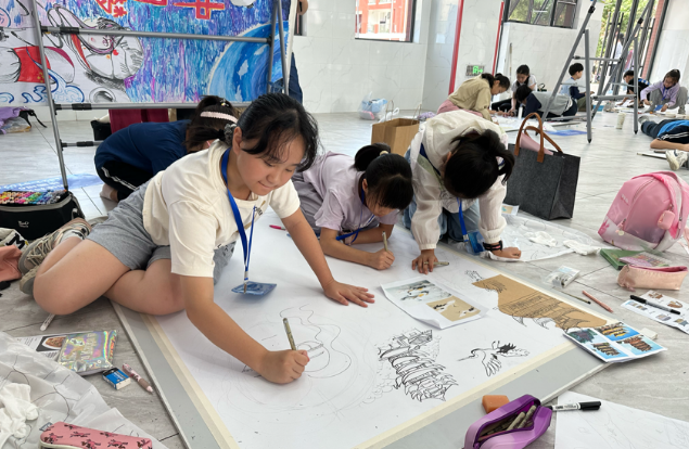 活动现场按不同年级、不同项目划分比赛场地——参加活动的同学们有的趴在地上作科幻画,勾勒幻想中的未来;有的一丝不苟地拼装着火箭,亲手搭建太空梦想;有的编写智慧交通程序,为生活插上科学翅膀⋯⋯