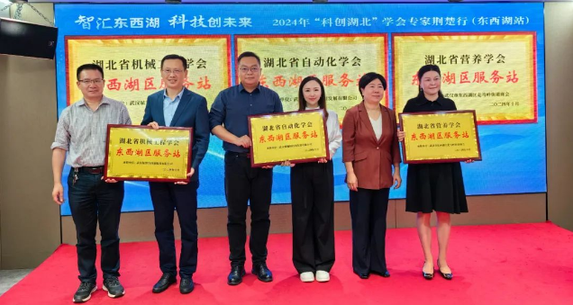 活动现场,湖北省机械工程学会副理事长兼秘书长朱永平、湖北省自动化学会秘书长刘磊、湖北省营养学会功能党支部书记郝丽萍分别为合作伙伴武汉铱智谷科创服务有限公司、武汉翼翱科技园发展有限公司、武汉市东西湖区走马岭街道商会授予学会东西湖区服务站牌匾。学会服务站承担单位是学会及辖区产业链企业沟通的桥梁,将为东西湖区的企业提供更加便捷、高效的科技创新服务,助力企业实现高质量发展。