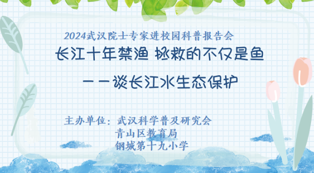 2024年10月16日下午,武汉院士专家进校园科普报告会走进钢城第十九小学。中国科学院水生物研究所理学博士王环珊,为六年级的学生讲授主题为“长江十年禁渔,拯救的不仅仅是鱼”的科普报告。