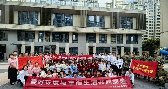 “因为心中有信念,面对艰难的时刻我们从不退缩,希望你们长大后也能勇敢坚强,为祖国贡献力量。”退役军人吴守东上台分享军旅故事,字里行间蕴含着浓厚的军人情结,展现使命担当。活动最后,幼儿园小朋友们带来合唱歌曲《歌唱祖国》,表达对祖国的热爱与祝福。