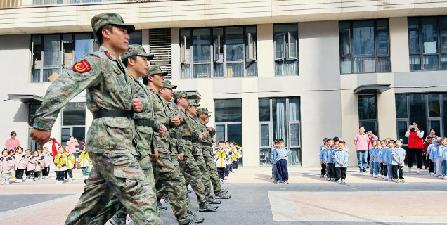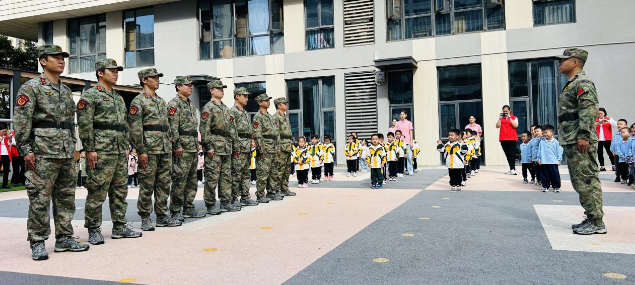 随后,退役军人进行队列动作基本演示,小朋友们表情严肃跟着学,听从指令,认真完成展示动作。在互动游戏环节,大家积极举手回答问题,收获了知识,也赢得了小奖品,将活动氛围推向高潮。
