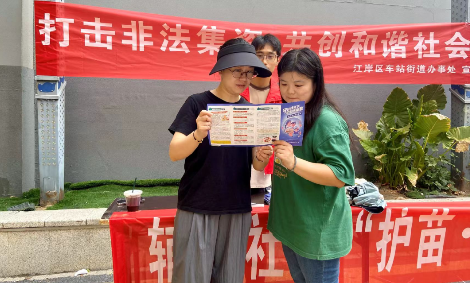 在防范非法集资和金融诈骗宣传摊位前,志愿者向居民生动讲解真实案例,详细分析非法集资性质特征及作案手法,让居民充分了解非法集资的危害,提高警惕性。现场工作人员还通过悬挂横幅、发放宣传册等方式,向现场居民普及诈骗的种类、手段及防范方法,提升居民防范非法集资的意识和能力。