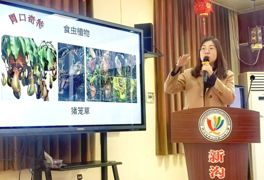 随后,张凡老师围绕“奇特的植物世界:植物与生活(赏、食、住、行、衣)”这一主题,深入浅出地为师生们揭示了植物所蕴藏的自然之美、生存智慧以及人类创造灵感的源泉。张老师通过生动有趣的语言和丰富多样的图片,为大家展示了各种奇特植物的特点、生存环境及其在生态系统中的重要作用,让师生们仿佛置身于一个充满奇幻色彩的植物王国。