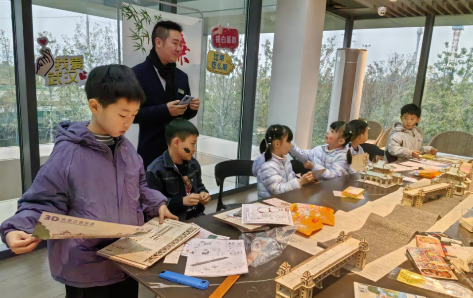 在文化体验区,武汉的地标建筑成为主角。孩子们在指导下,亲手制作了长江大桥和武汉大学图书馆的3D模型。这些模型不仅展现了武汉的地标性建筑,也激发了孩子们对家乡建筑的热爱和探索精神,对武汉的城市风貌有了更深入的了解。