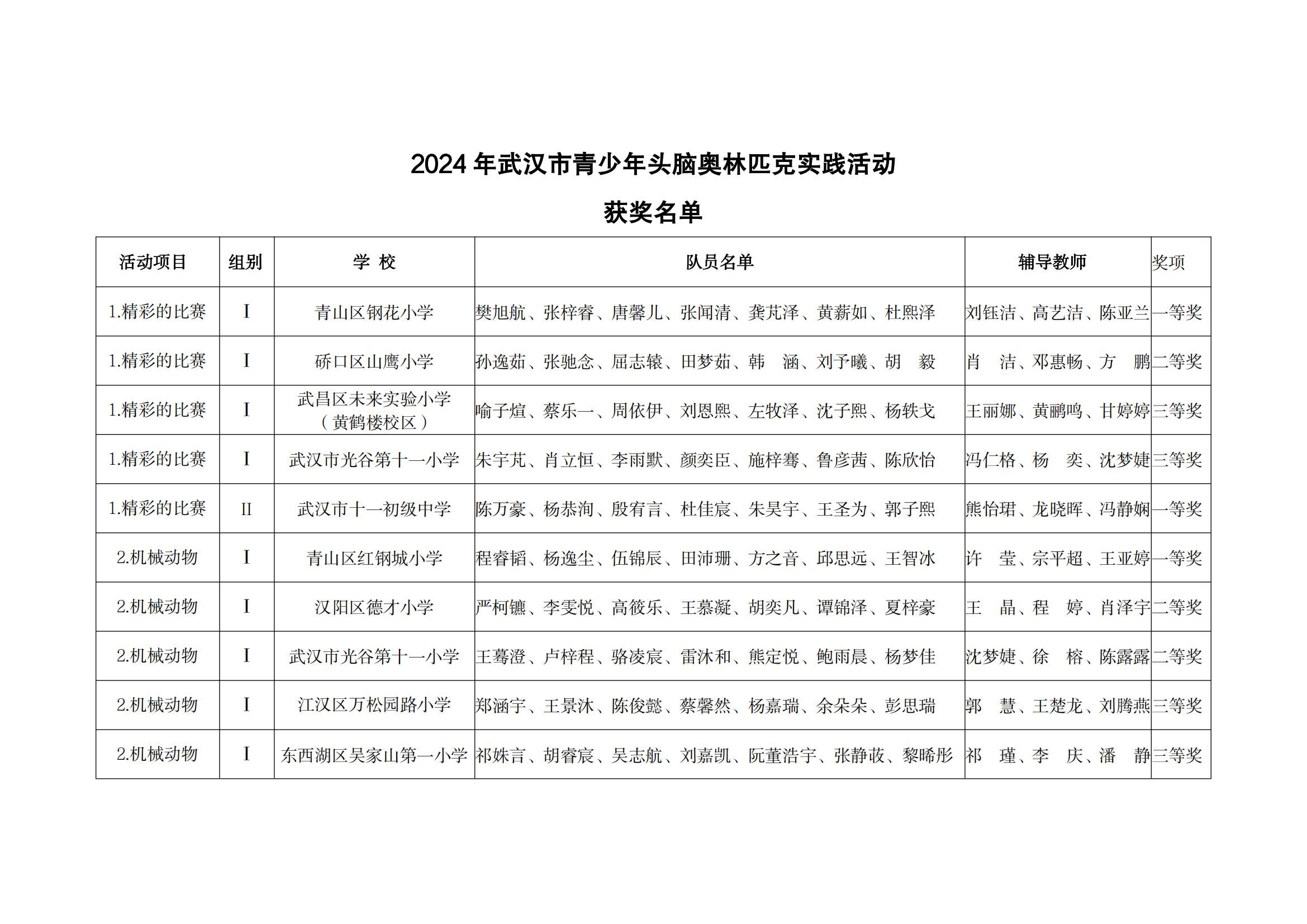按照工作程序,现将2024年武汉市青少年头脑奥林匹克实践活动结果予以公示,公示内容详见附件,公示时间为2024年12月30日—2025年1月4日。公示期间监督电话:何老师 13971366508。