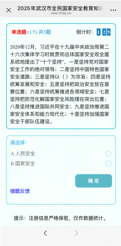2025年是《中华人民共和国国家安全法》颁布十周年,4月15日将迎来第十个全民国家安全教育日。为深入学习贯彻总体国家安全观,增强全民国家安全意识和素养,2025年武汉市全民国家安全教育知识竞答活动将于3月3日上午10点正式拉开帷幕。
