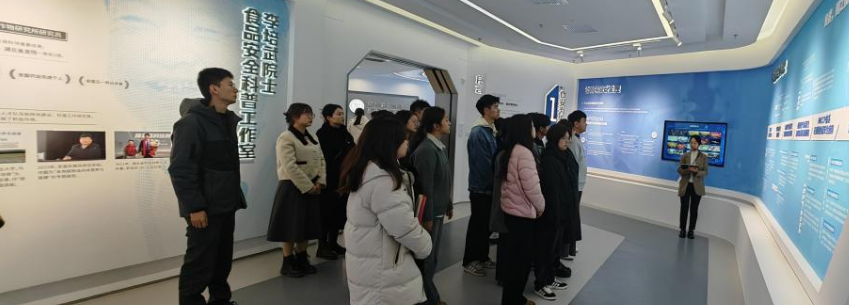 在武汉食品化妆品检验所科普教育基地和李培武院士食品安全科普工作室,师生们依次参观了食安为先、技术护航、食安知探等主题展区。从食物溯源过程到检验辨别方法、从寻味江城互动体验到4D动画身临其境沉浸式观看,通过一系列现场参观交流和互动体验,老师和同学们对食品安全知识有了更加全面、深入的了解。