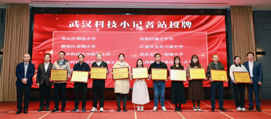 蒋波、李少良、饶建平为青山区钢花小学、武汉经济开发区第一初级中学、江夏区文化大道中学、武汉市实验博雅第二小学、武汉市第一初级中学、蔡甸区南湖小学、华中科技大学附属小学、汉阳区德才中学、东西湖区吴家山第一小学、华中科技大学同济医学院附属小学10家获得武汉科技小记者站的学校授牌。