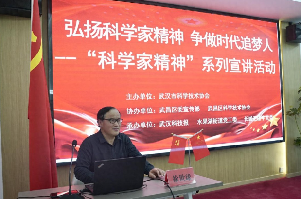 市科协网讯 3月25日下午,由主办,武昌区科学技术协会、武昌区委宣传部协办,武汉科技报社、水果湖街道党工委承办的“科学家精神”系列宣讲活动在武昌区长城汇楼宇“学习强国”学习小站举行。中国地质大学(武汉)徐世球教授以《崎岖五岭路 石迹耿千秋——李四光科学家精神永放光芒》为题,通过李四光生平故事与科研成就,深度解读科学家“胸怀祖国、服务人民”的爱国精神内核,现场70余名辖区科研单位、科创企业、科普志愿者一同沉浸式感受这位“地质力学之父”的赤子之心。因风趣讲学风格,徐教授被听众亲切称为“球球爷爷”。