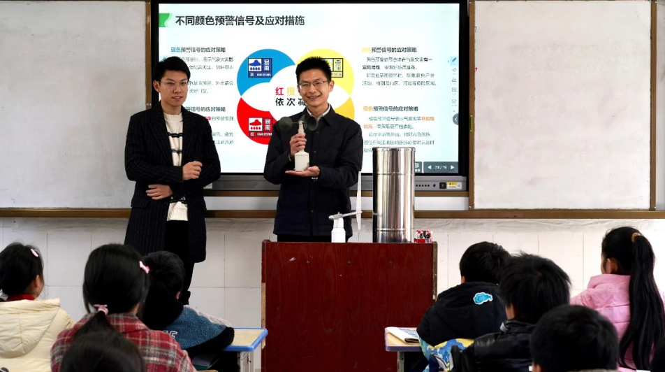 “蓝色、黄色、橙色和红色是四个不同级别的气象灾害预警信号,我们要识别其危害和紧急程度,并掌握防御指南……”在课堂上,工作人员结合图文并茂的 PPT,为学生们带来了一场精彩的气象知识讲座,内容涵盖了气象基础知识、天气现象的形成、气象灾害的种类及防御措施等多个方面。