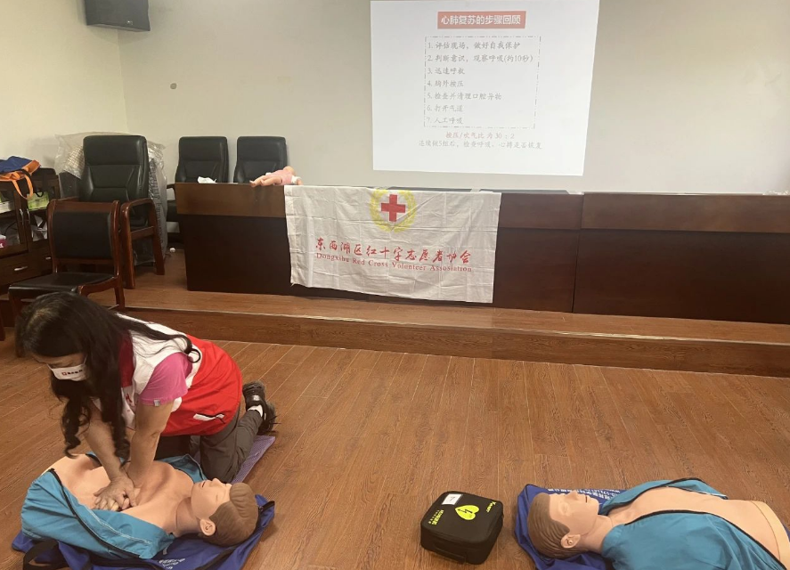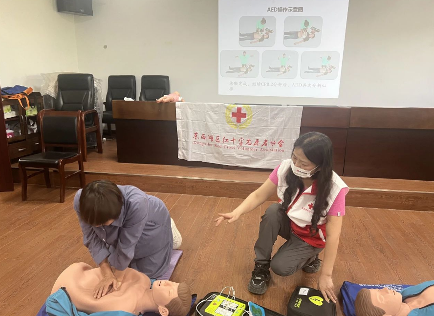 为普及急救知识,提升应对突发心搏骤停、气道异物梗阻等紧急事件的能力。吴家山街梦佳社区联合湖北银行临空港支行、东西湖区红十字志愿者协会,开展AED(自动体外除颤器)使用及海姆立克急救法培训活动,旨在通过理论与实践相结合的方式,增强居民自救互救能力。