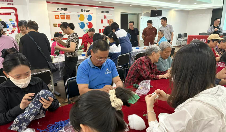 制作艾灸锤的区域同样热闹非凡,志愿者提前备好艾草、棉布、针线等材料,参与者在专业指导下,将干燥的艾草填充进布囊,精心缝制出兼具实用与美观的艾灸锤。“艾草有驱寒祛湿的功效,我要把这个艾灸锤送给独居的张奶奶。”退役军人老陈的话语,道出了许多参与者的心声。