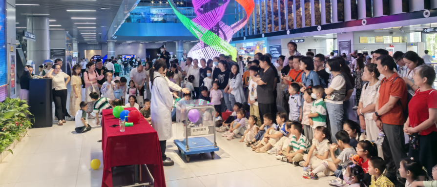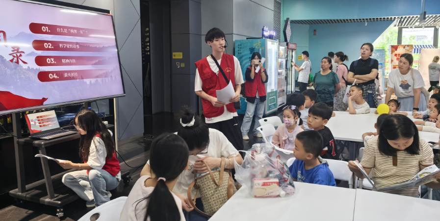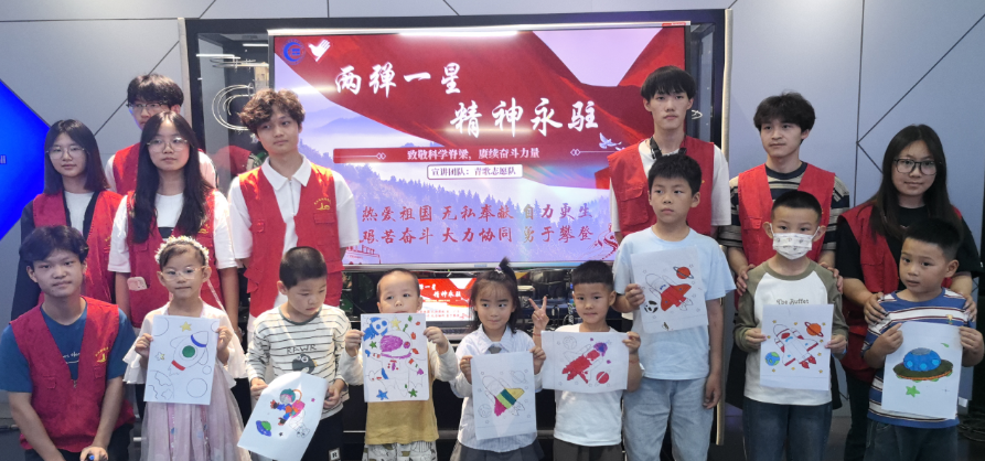 儿童节当天,在武汉科技馆内,一场大学生和小学生共度儿童节的活动正在进行。在这场“致敬星辰,传承薪火——‘两弹一星’精神”科普宣讲活动中,长江工程职业技术学院的大学生志愿者们为来馆的小观众们讲述了“两弹元勋”邓稼先隐姓埋名在沙漠戈壁里研制原子弹、氢弹以及“中国导弹之父”钱学森放弃美国优厚待遇辗转回国,投身祖国科研事业的感人事迹,并带领大家感悟“两弹一星”热爱祖国、无私奉献,自力更生、艰苦奋斗,大力协同、勇于攀登的精神内涵。同时,“两弹一星”主题动画,重现了那段波澜壮阔的奋斗岁月。最后,小观众们为航天主题画作填色。