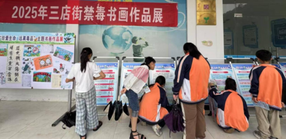 为进一步推进青少年毒品预防教育工作,普及禁毒知识,营造浓厚的禁毒氛围,在第38个国际禁毒日来临之际,三店街道办事处组织派出所、社区戒毒康复中心、教办、科协、司法所、平安办、文化站、关工委等多部门,联合三店街中心小学举办“珍爱生命远离毒品”禁毒书画作品展,以艺术之名,向毒品宣战!