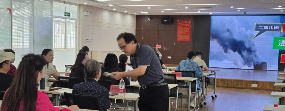 徐世球教授以《减少碳排放,你可以做什么?》为题,从认识碳排放、减少碳排放两大方面开展讲座。他深入浅出地讲解了碳排放的科学含义、产生过程,以及由此引发的气候变化与危害,详细阐述了“双碳”目标的科学内涵、实现途径,还强调了各行业领域及每个人在实现“双碳”目标中的责任。同时,徐世球教授介绍了我国为实现这一目标付出的巨大努力和取得的辉煌成就。他的讲座主题鲜明、内涵丰富,贴近生活、大众和实际,兼具科学性、知识性、通俗性、趣味性和互动性,让社区居民深刻认识到推进碳达峰碳中和的重大意义和实践要求。