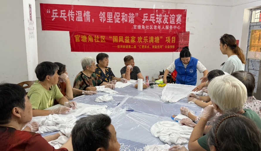 7月9日上午,东西湖区径河街道官塘角社区联合志道社工在官塘雅居居民活动室举办“古韵扎染·匠心满‘塘’”扎染体验活动,吸引20余名居民参与。活动通过知识讲解、手工实践和作品展示,让居民近距离感受非遗扎染技艺的魅力,进一步弘扬中华优秀传统文化。