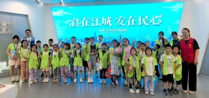 上午十点半,暑期托管班学生们抵达武汉食品化妆品检验所,孩子们首先观看了国家食品安全宣传视频,对我国食品安全制度建设与监管成效有了初步了解。然后,参观李培武院士食品安全科普工作室和武汉食品化妆品检验所科普教育基地,院士科普工作室团队讲解员通过图文并茂的方式,介绍了我国食品安全发展中的重点事件与制度变迁,帮助学生建立基本的食品安全意识。在实物展示区域,一组以湖北特色美食为原型制作的仿真食物吸引了大家目光。这些模型外形逼真、工艺精细,专为科普教学设计,便于学生识别常见食品类型与结构特征,增强现场学习的直观体验。
