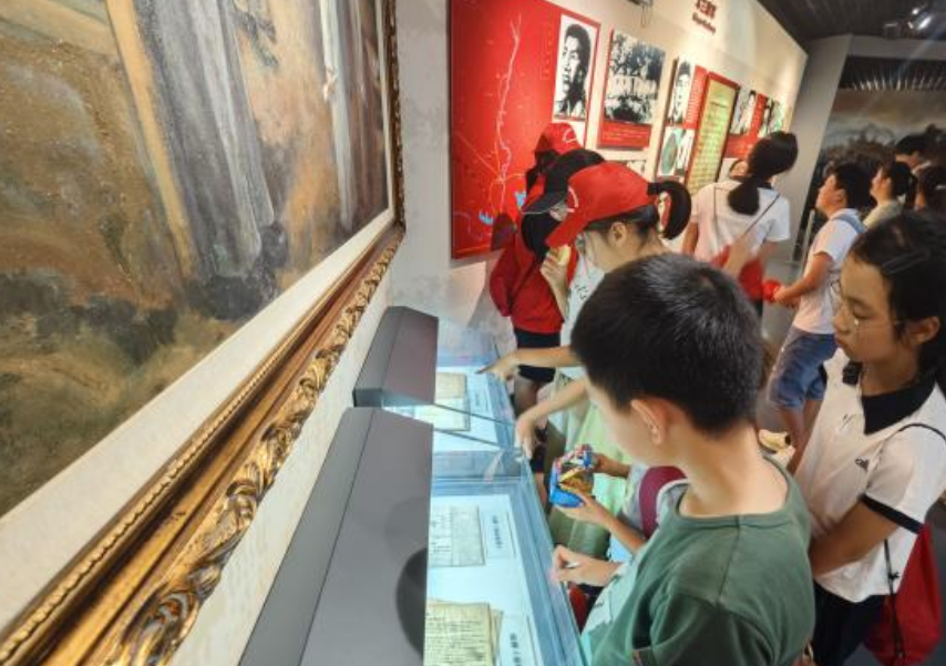 登上大巴车后,车内气氛依旧热烈。工作人员组织了爱国知识有奖问答,孩子们积极抢答,对各种爱国知识对答如流,进一步加深了对国家历史和文化的了解。抵达武汉抗战第一村后,孩子们在讲解员的带领下开启了参观之旅。大家认真聆听着革命故事,观看历史文物和珍贵照片,真切地感受到了那段波澜壮阔的抗战历史,对革命先辈们的英勇事迹和无私奉献肃然起敬。