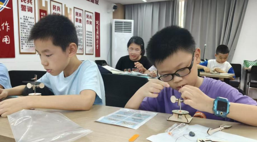 最令人期待的环节当属DIY风向标的手工制作。在老师的指导下,按照图解步骤,有条不紊地进行制作。大家相互协作,仔细调整轴套位置,确保“指针”和“风轮”能自由转动。制作完成后,老师讲解了风向标实验原理:风向标转动的快慢反映风力大小,箭头指向则显示风向。通过亲手制作和操作,青少年们对风力和风向的测量有了更清晰地认识。