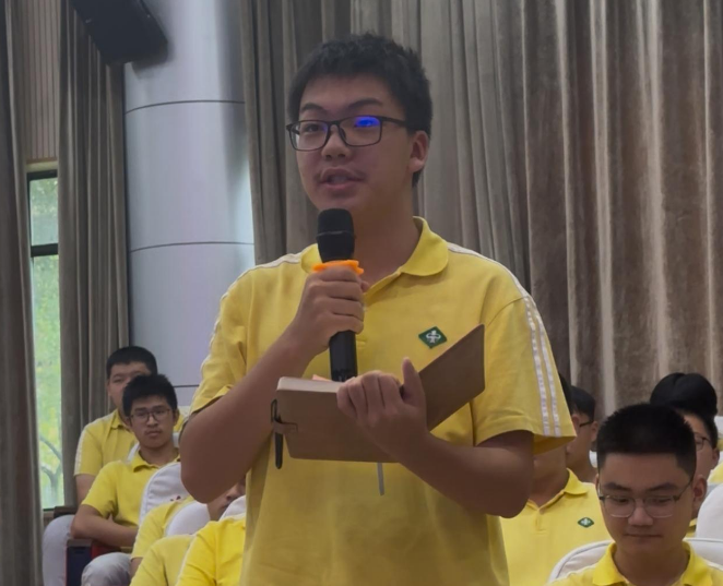 在互动对话环节,学生们热情爆棚,非常渴望与杰出校友对话。“龙爷爷,您遇到困难时如何调整心态?”龙乐豪朗声应答,给出两个关键词:责任与信心。他以1996年火箭发射惨败为例,鼓励学生遇到困难要“勇于担责,严慎细实”。